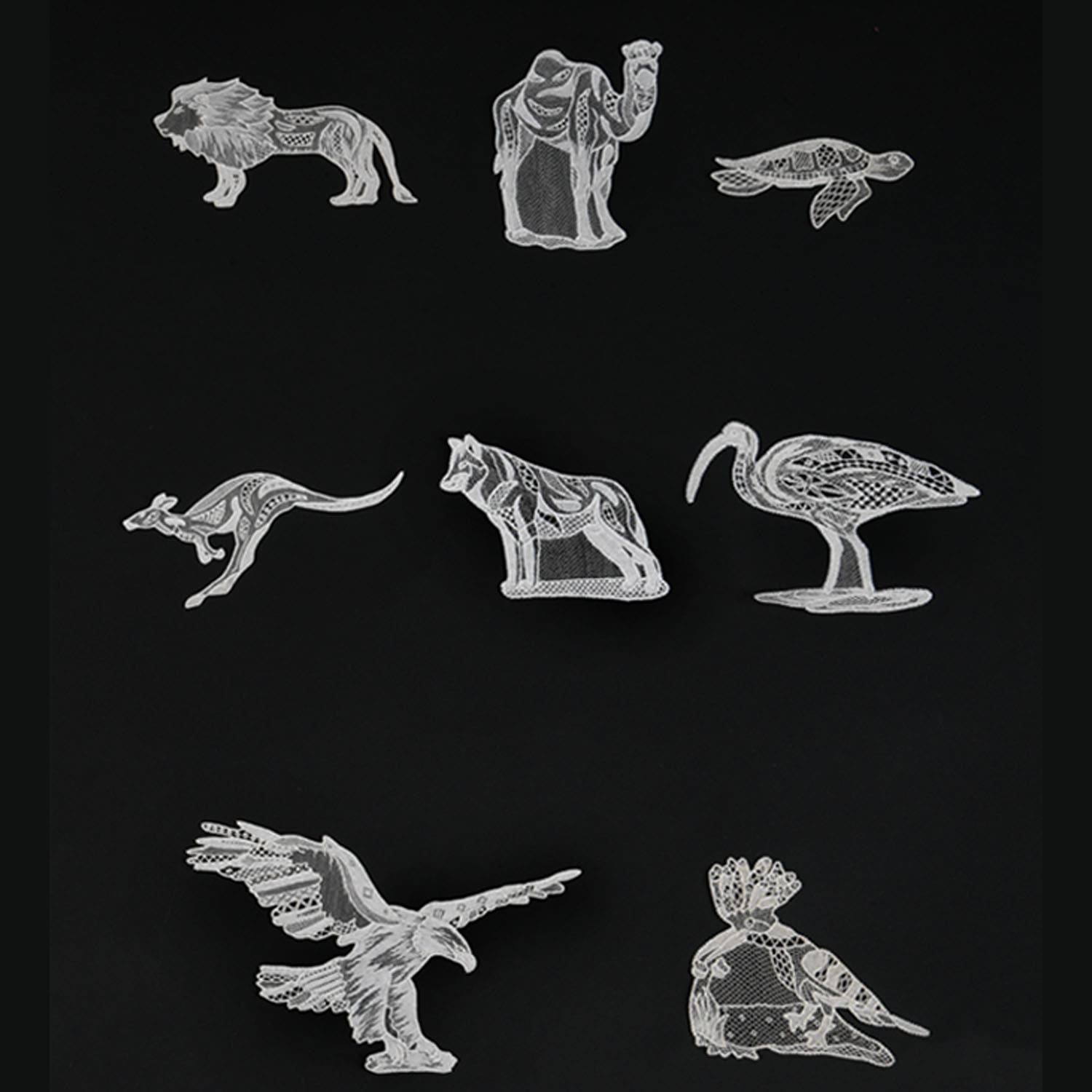 Um diese dreidimensionalen Schmetterlinge zum Leben zu erwecken, belebte die Werkstatt in Alençon eine spektakuläre Technik des 19. Jahrhunderts wieder: die plastische Bearbeitung der Alençon-Spitze. Diese Methode erlangte erstmals internationale Bekanntheit auf der Weltausstellung 1851 in London. In „Réseau“ symbolisieren die filigranen Schmetterlinge die Verwandlung und die zerbrechliche Schönheit der Natur, zart ruhend auf Kirschzweigen. Ein einzelnes Projekt dieser Art kann über 7,300 Stunden akribischer Handarbeit umfassen.